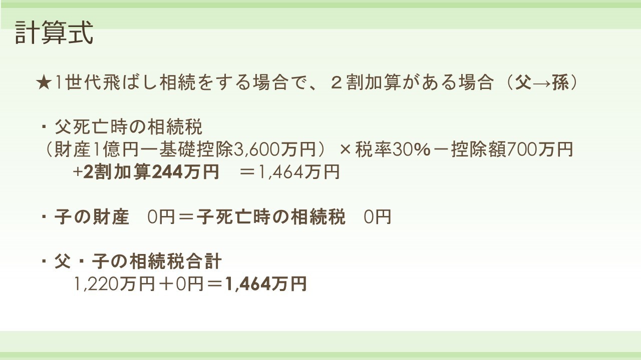 2割加算があったとしても、飛ばした方が相続税額が下がるんですけどね。